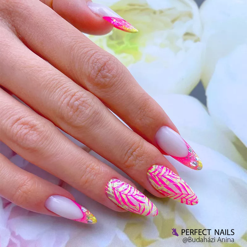 - A szilikon bőrvédő matrica eltávolítása után a körmöt rugalmas fényzselével (pl.: Extreme Gloss Gel), körömlakk esetén fedőlakkal fedjük.