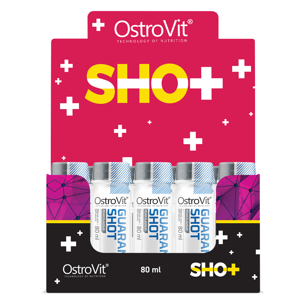 Az OstroVit Guarana Shot egy kiváló minőségű étrend-kiegészítő, amely guarana mag kivonatot, valamint ginzeng gyökér kivonatot és vízmentes koffeint tartalmaz. A termék ízletes körte ízesítésű, praktikus shot formában kapható, sportolók és mindazok számára készült, akik szeretnék ösztönözni a szervezet működését.