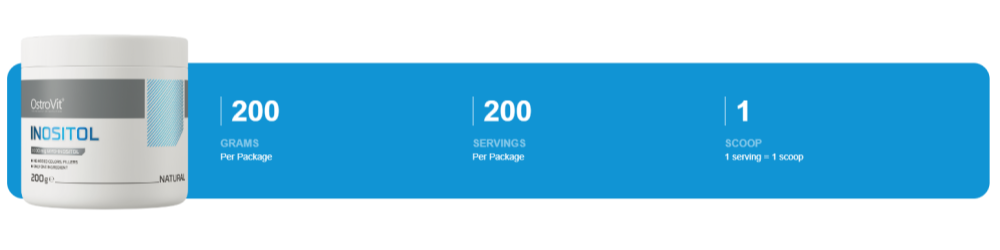 - Inozitol forrása – Egy adag étrend-kiegészítő 1000 mg myo-inozitolt biztosít a szervezet számára.