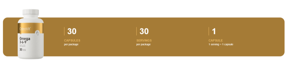 Az OstroVit Omega 3-6-9 egy étrend-kiegészítő, amely értékes omega-3 telítetlen zsírsavakat, valamint omega-6 és omega-9 zsírsavakat tartalmaz, továbbá E-vitamint is biztosít a szervezet számára. A készítmény könnyen lenyelhető kapszulák formájában kapható, és különösen azoknak ajánlott, akiknek megnövekedett szükséglete van a fent említett vegyületekre.