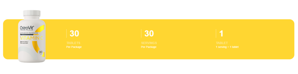 OstroVit Vitamin C 30 tabletta – kiváló minőségű étrend-kiegészítő, amely értékes forrása az L-aszkorbinsavnak (C-vitamin). A termék könnyen lenyelhető tabletta formában elérhető, elsősorban sportolók és fokozott C-vitamin szükséglettel rendelkező személyek számára ajánlott.