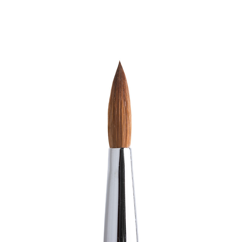 Precízen vágott, hegyes végű, lapított fejű porcelán építő ecset. Hajlékonyabb szőre a rugalmasabb anyagkezelést teszi lehetővé. Gyémánt csiszolású fém nyéllel és kupakkal kapható. Speciális, precízen vágott kialakítása könnyebbé teszi a porcelán körmök formázását.