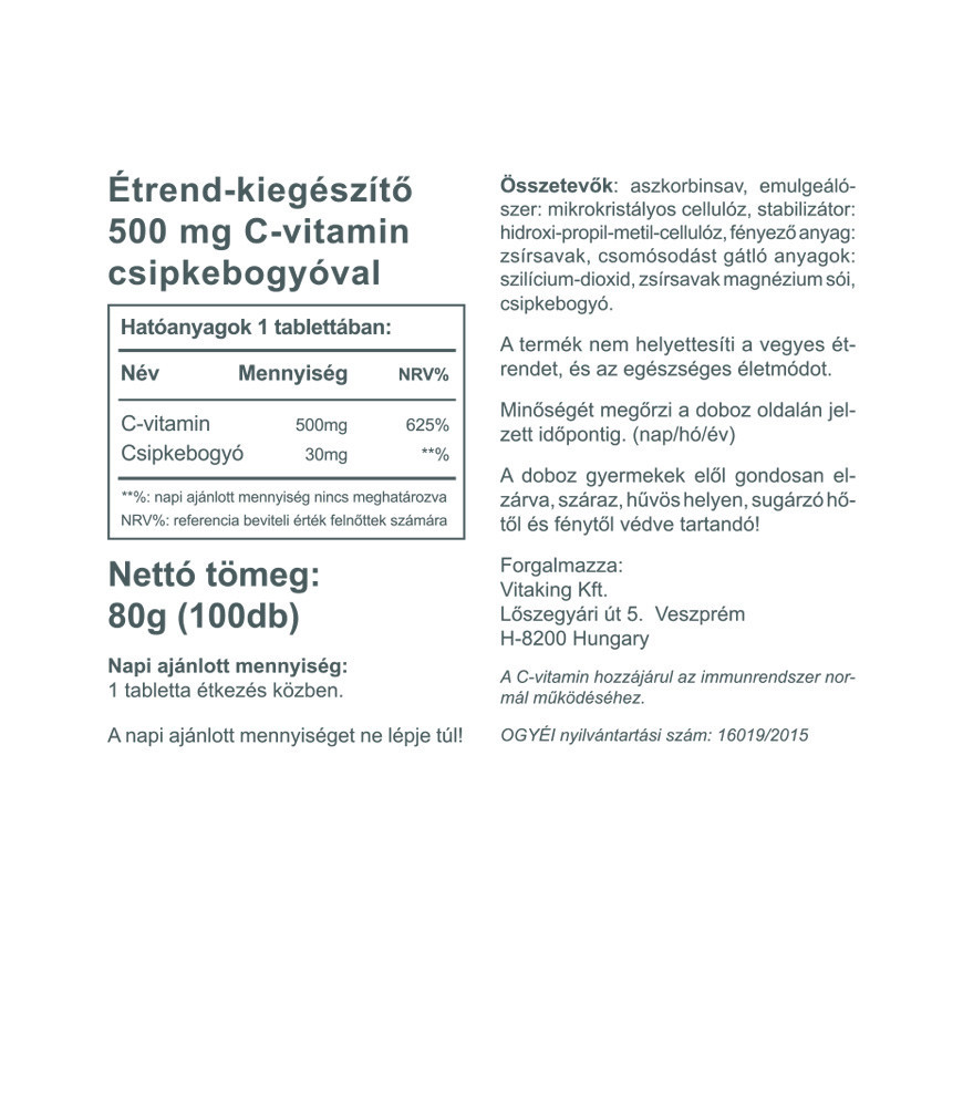 A Vitaking C-vitamin 500mg termék a C-vitamin és csipkebogyó kombinációja.