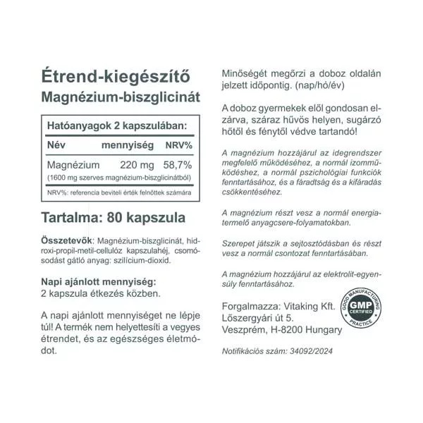 A Vitaking szerves Magnézium biszglicinát készítmény 220mg elemi magnéziumot tartalmaz napi adagonként (2 kapszula) Rengeteg magnézium készítmény kapható a piacon, de mielőtt választanál, nézd meg milyen és mennyi magnéziumot tartalmaz!