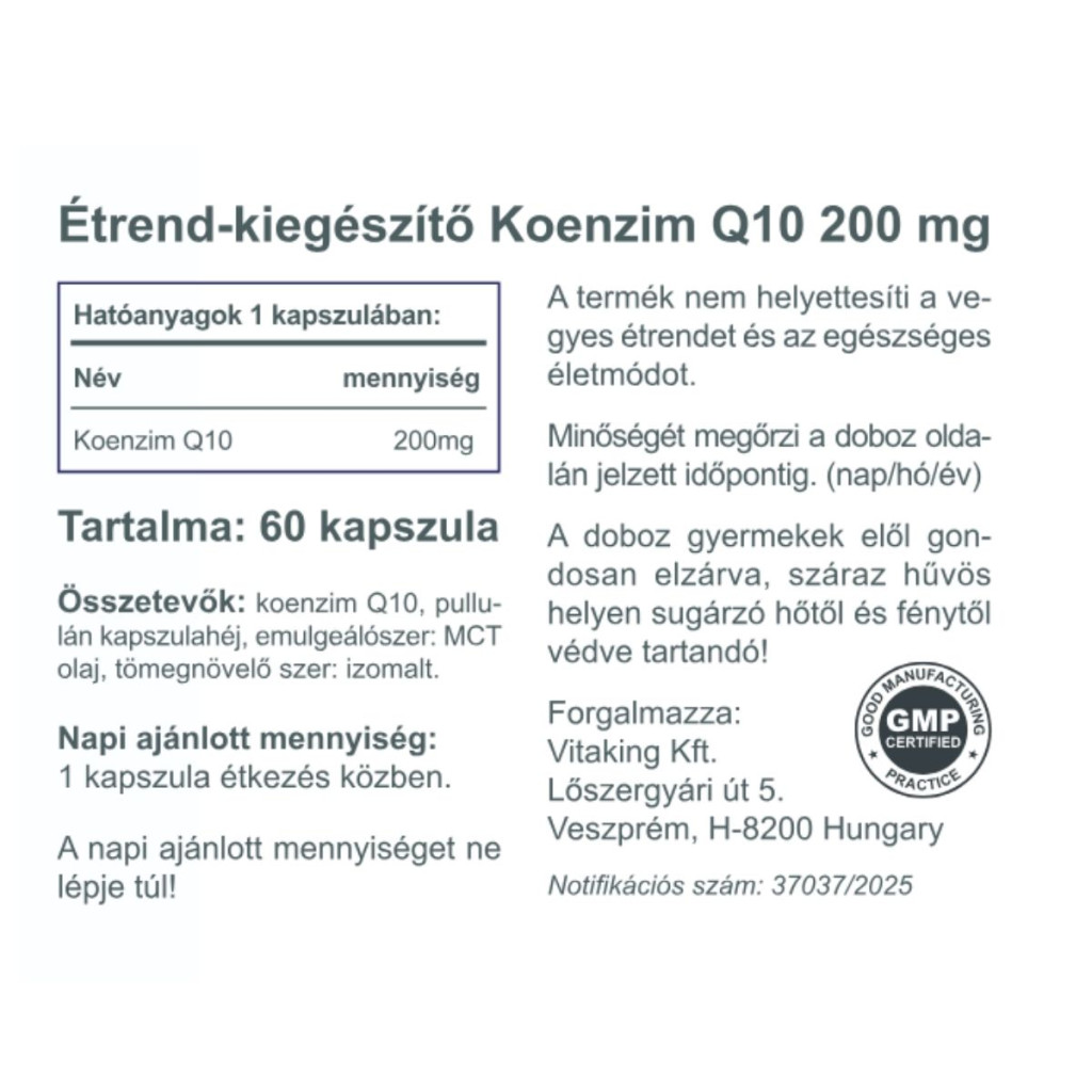 - 200 mg növényi fermentációval készült koenzim Q10 kapszulánként