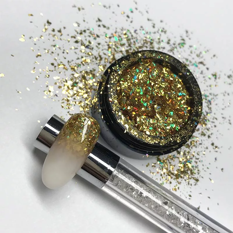 Ragyogó konfettik, csillámló körmök a csodálatos Wonder Flakes nélkül elképzelhetetlenek. Dörzsöld a felületbe vagy építsd be díszítésként és hozd el a csodát a vendégeidnek is! Lehelet finom, különlegesen csillámló, holografikus fényű díszítő pelyhek felületi és beépített díszítésekhez.